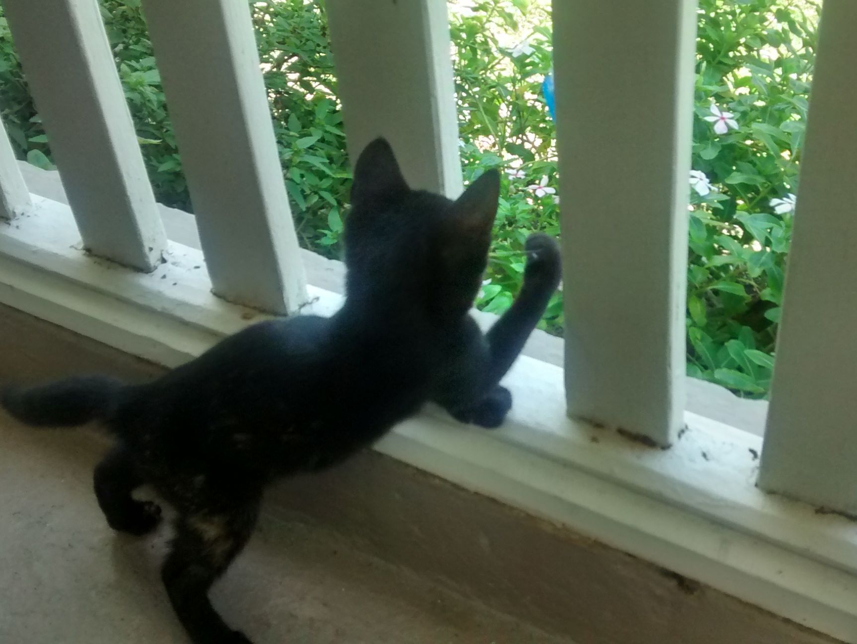 The ginger kitten climbed an 8 foot chain-link fence the other day and got stuck spread eagled at the top, looking around helplessly - I wish I got a photo of that