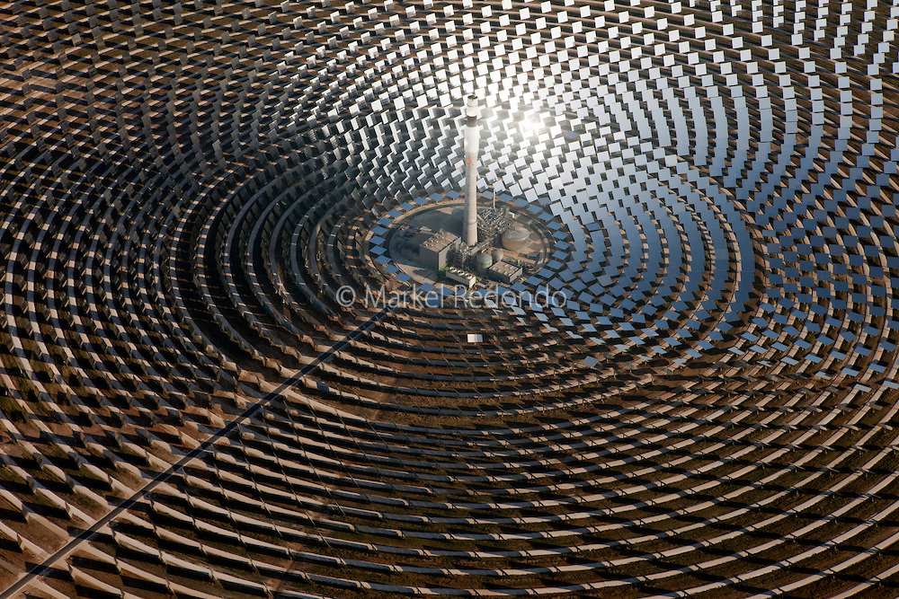 The 'molten salt' tank sits on top of the tower. I will stay hot all night.