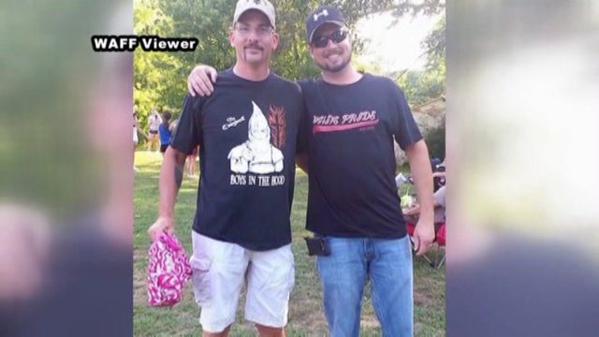 Both men told WAFF that the shirts were worn as a joke, but their presence at the youth cheerleading practice alerted volunteer cheerleading coach Kayleigh Tipton to complain to Kenny Jones, the commissioner of the North Alabama Youth Football & Cheerleading League.