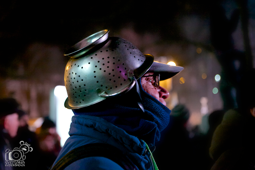 Her fellow Ukrainian "Pastafarianians" two years ago in Kiev: