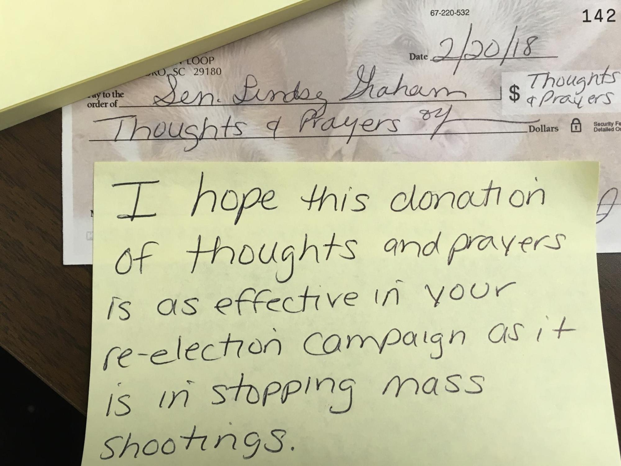 Every mass shooting, mail your favourite GOP local leader a cheque for 'thoughts and prayers' plus a few cents (not enough to cover processing).