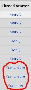 Funny. I've been gone for a couple weeks and didn't even notice that your handle had actually changed. I guess my brain had already registered that you were now Kuciwalker.Click here if you're having trouble sleeping.