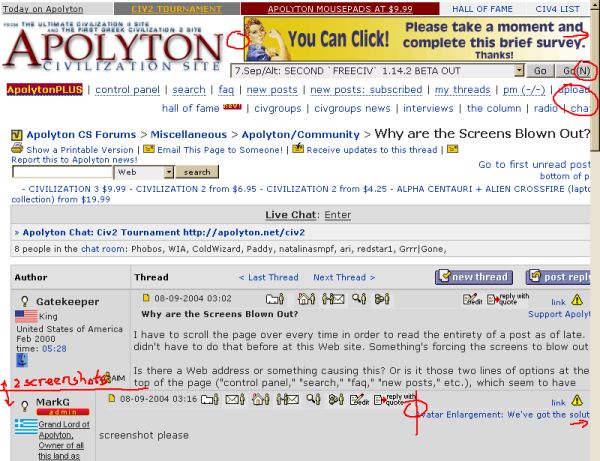 Is there a Web address or something causing this? Or is it those two lines of options at the top of the page ("control panel," "search," "faq," "new posts," etc.), which seem to have increased in number of options as of late? (For instance, the "new!" bar has a long red box behind the words.)