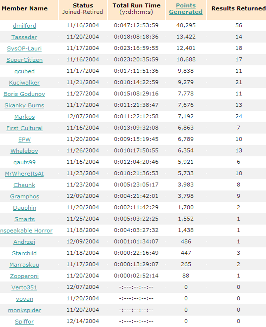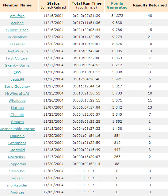 The average CPU time required per result is about 1 day for the team, and we generate approximately 26 points per hour each.