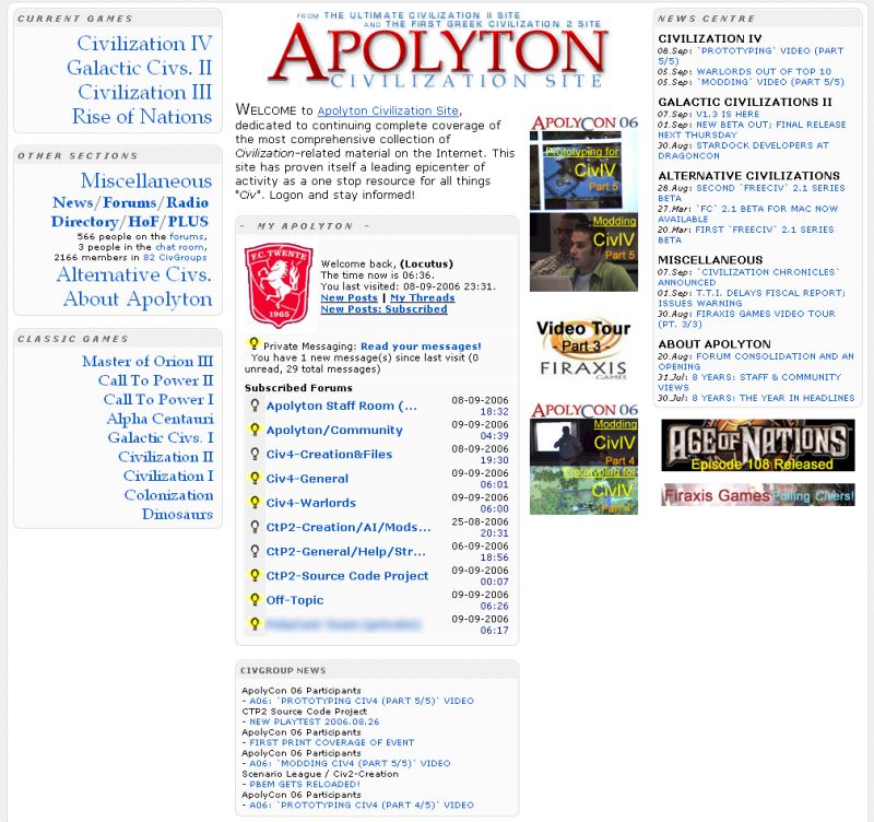 The first phase in a "2006 homepage update" for Apolyton was completed and published -- both by me -- this evening. These changes come greatly in response to user feedback, particularly in this thread.
