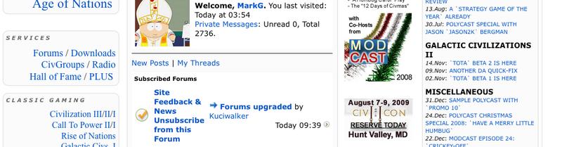 1) right column with who's online etc is a wasted of space when displaying a thread. pages are much longer now. they could stay on the forum viewsCo-Founder, Apolyton Civilization Site