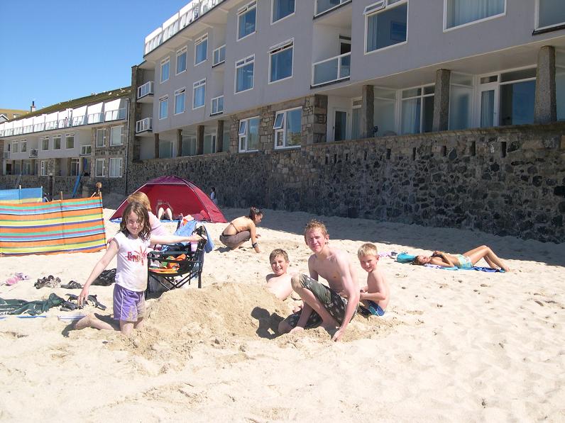 A shot of the brood enjoying the sun and sand at St Ives in Cornwall.