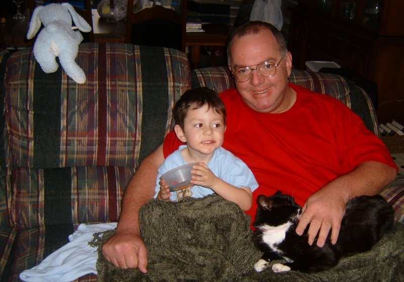 teaching him to pet her and teaching her to not run when Cameron screams her name..it is just hiliarious..our kitty Ratooney knows what 3 year old boyz want to do to a 3 year old cat..