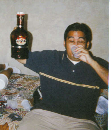 Me before I got drunk. What I'm holding is the 'Growler'.
