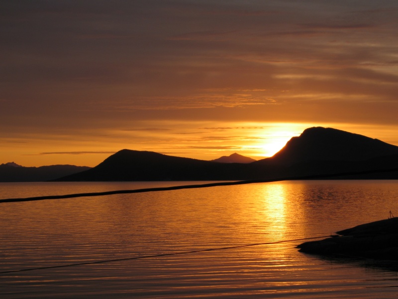 First, the midnight sun, or at least a close miss. Pic was taken 10 minutes past midnight, when the sun had *just* hid behind a mountian.