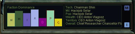 Maarifa is still in first place. Anton looks to have jumped ahead of me after I got his frequency from a pod pop- I didn't think he'd gotten the better of me in our trades, but he's suddenly first in a couple of categories. Not wealth or tech, though.