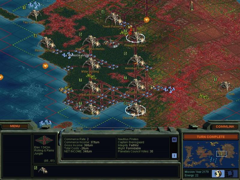 The Caretakers wiped out the university, 2 turns later they contacted me and declared vendetta, so I contacted all the other faction hoping to get a map and ask them to declare war on them as well, I got the map from the Drones and a pact from the usurpers. I look at the map and saw this. I'd estimate that I have played well over 100 complete games of SMAC(X) in my life and have never seen this before. Has anyone else ever come across an AI running an ICS before? I would guess it has to do with the monsoon jungle, but I do not know for sure.