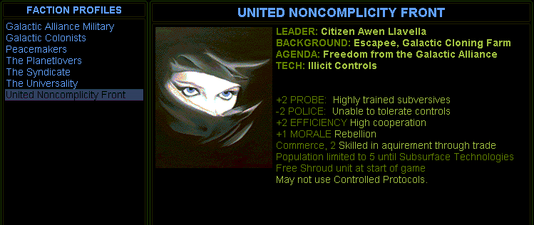 Here's a look at our faction and the list of factions we will come to confront: