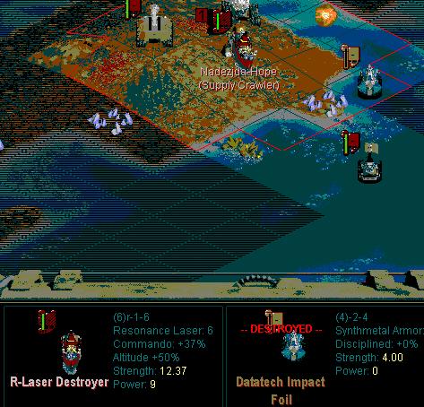 So a few turns ago I popped a pod inside a base radius and got an earthquake, which essentially stranded 3 of my naval units high and dry. This turn I got to attack one of the Datatech units! Not bad enough that I'm a human against the AI, but I get an altitude bonus as well!