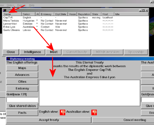 Another problem I have is, I can't seem to do diplomacy. The other civs go to war and then my diplomacy screen just shows we're at war. I can't negotiate or make it do anything else.