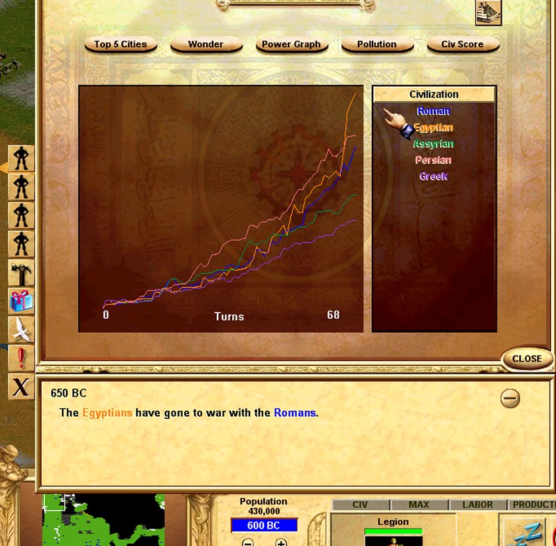 As for turn 68, it was actually an accident. I attacked one of your cities with a warrior that had 1 hp. I decided it was not worth replaying the turn for, and i did give you 500 gold. You argument is null."