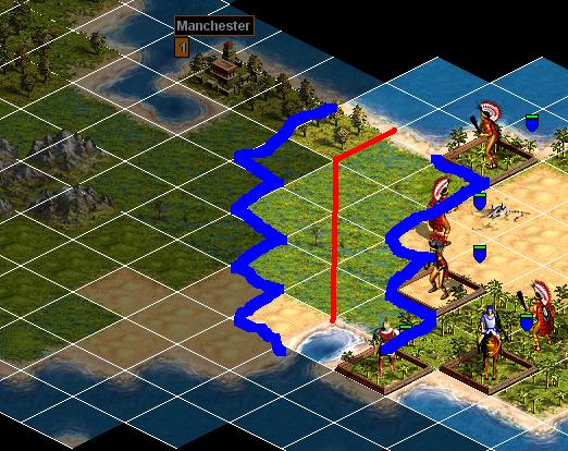 Blue=furtherest allowed military deployment for respective sides