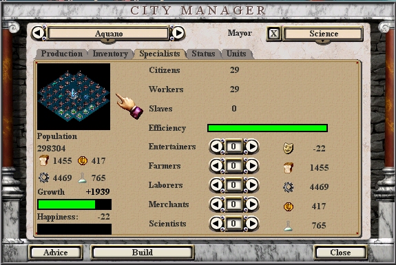 1. Attempt to get every tile in every cities radius improved using the optimum improvement available. This becomes more challenging if you are haven't reached the genetic ages yet, and so every now and again you have to start all over again. You may wish to put the farms down last, or your cities will grow while you go round the earth, and you'll need more turns. Attempt to do this in 30 turns. Allow for at least 50k per city. It doesn't count unless you have more than 100 cities.