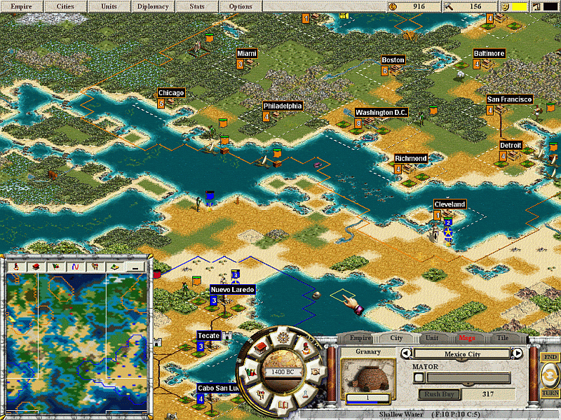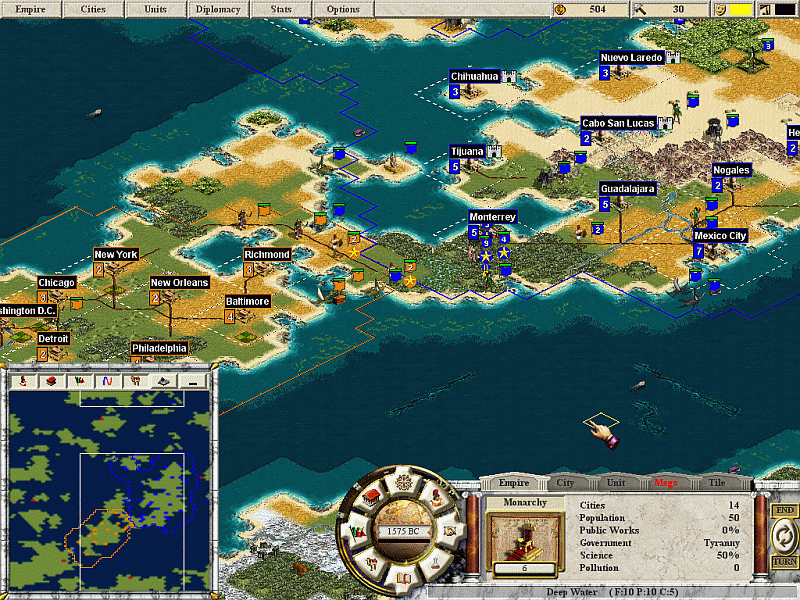 • Second game, i got way the better land as you can see where the majority of my cities are in total plains/beach, although Barley got lots of mountains it would take some terraforming.