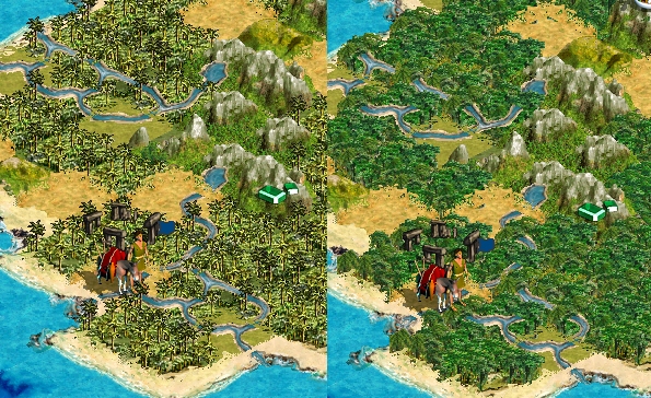 I did a little tweaking thanks to OnePressent's PM.... I basically brought back lighter jungles from Ctp2 but added the Ctp1 jungle trees to it (seen on the left). On the right are the darker SnOOpy jungles. Which do you guys prefer?