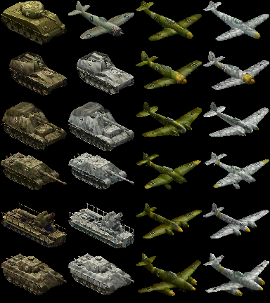 ... but although I would love to have the patience (if not the talent) to create these sprites from a blank canvas, I do not. They are based on sprites from the games Blitzkrieg Operation Barbarossa and some from Sudden Strike later on possibly.