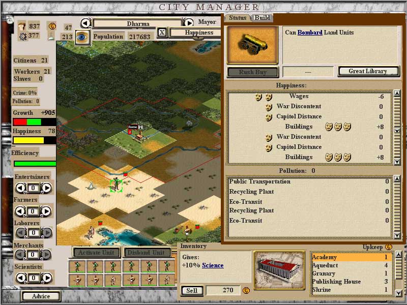 I tried to incorporate the build manager into the city screen as well (as in Hex's version). It works, but it gets awfully crowded on the righthand pane...