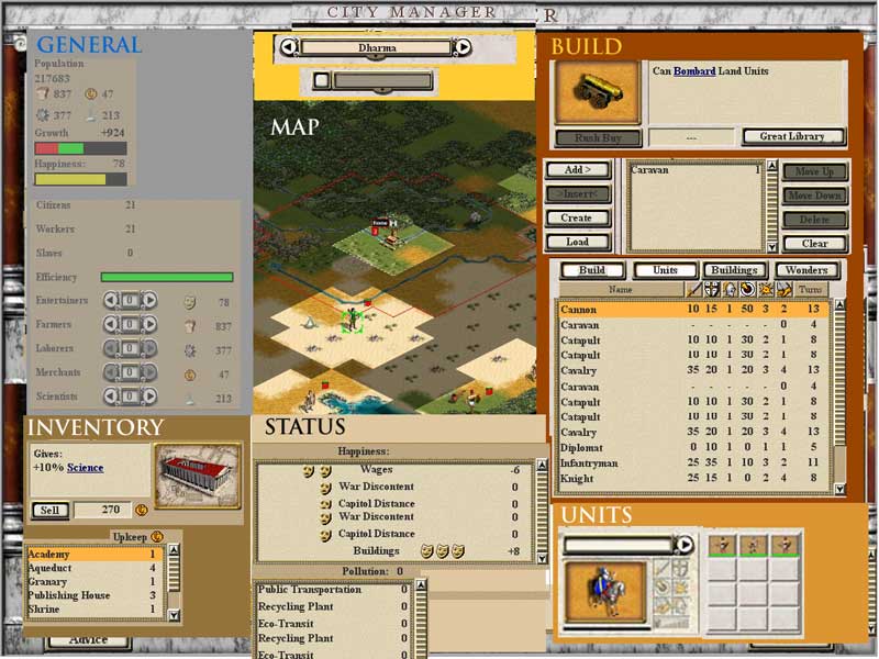 • would be nice if buildings (city improvements) had mini pics (like in civ2)