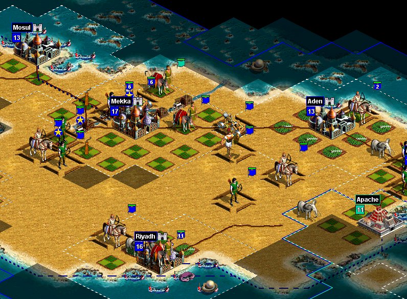 The situation for other civs like the Arabs is similar. In the 2 res game the Arabs are at war with the Chinese, but were at war with the Indians on the same continent. However there are again a lot units around the capital, and that was also the case when they were at war with the Indians.Civ2 military advisor: "No complaints, Sir!"