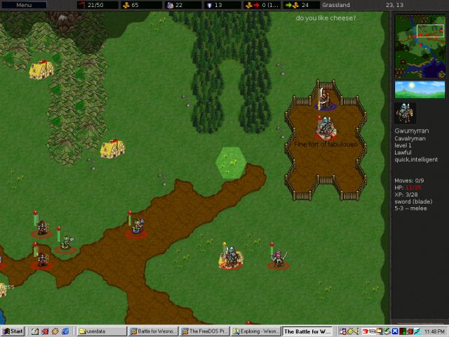 However, I had launched an amphibious assault with naga's further down the river and sneaked a cavalryman behind the orcish lines. So while the orcs were advancing on my capital I was free to capture villages in his hinterland.