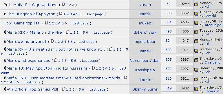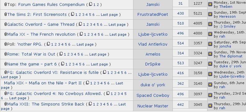 Other Games archive top ten viewed threads.