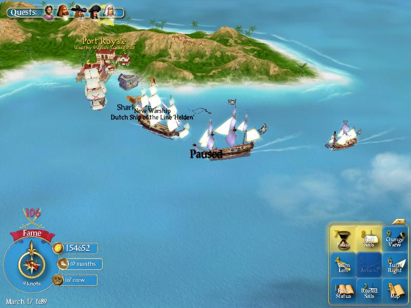 Buying treasure maps to the 9 Legendary Pirates cost you 600 for each piece of a 4 piece map. Not the 200 for the whole thing at the lower level. So here I am with 15 months at sea, my crew is content and I have less than 7k in gold. I have one specialist (a Gunner--thank god for him), I have 3 upgrades (Cotton sails, Bronze Cannon, and Fine-grain power). Reached the rank of Major for the Dutch & English. I'm in reach of a port that has Copper plating. And I got a kiss on the hand from a gov's daughter that leads me to a fugitive in a port near by that will lead to a 3k reward or a special item (tough decision to make--gold or item).