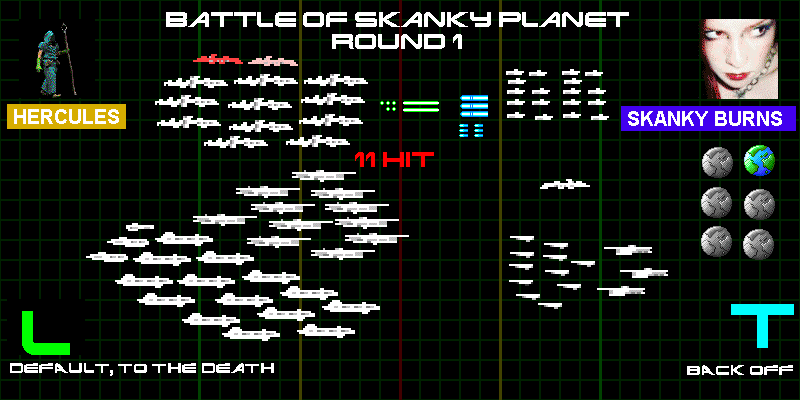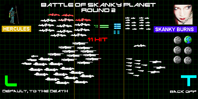 After last round's ignoble defeat, Hercules unleashed his wrath on Skanky a second time. This time he brought his entire fleet. Things didn't look so good for Skanky, who was outnumbered 4 to 1. Or did they?
