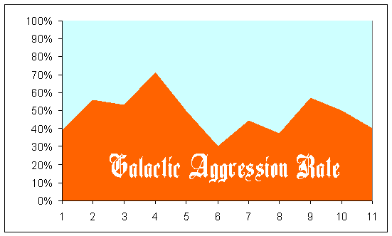 The next graph: the percent of players who gave "Attack!" as an order in any given round.