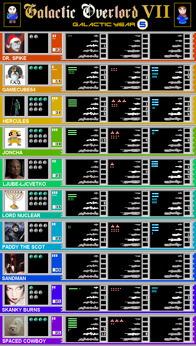 7.5 DISPLAY BASES TONNAGE H C BPs L F T DrSpike 2 23 3 Gamecube64 3 15 28 6 29 Hercules 4 6 32 40 36 32 Joncha 3 8 30 30 27 12 Ljube-ljcvetko 7 20 12 30 Lord Nuclear 4 8 35 28 28 Paddy the Scot 7 20 4 28 31 Sandman 3 45 Skanky Burns 1 5 21 11 9 9 Spaced Cowboy 4 21 63 32 22 43 262 207 150 171