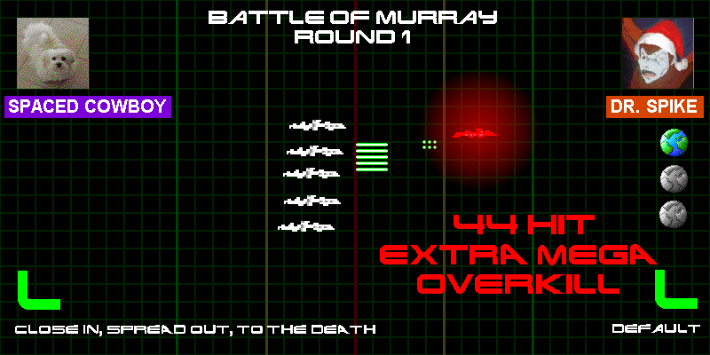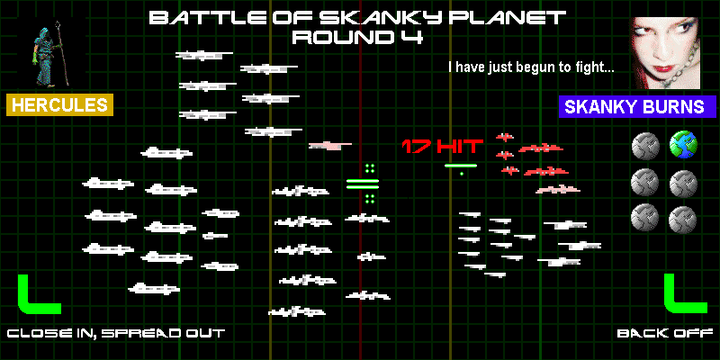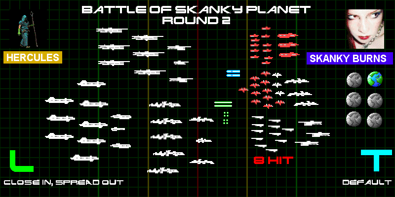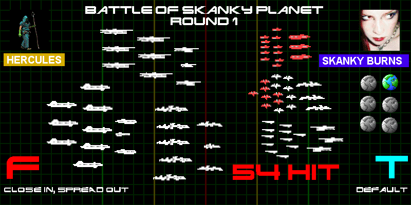 The opening round confirmed Skanky's worst fears. Hercules swarmed with fighters while Skanky's torpedo captains had trouble hitting the spread out enemy fleet. In one round almost half the fleet was lost.