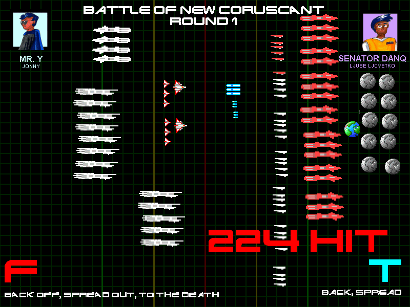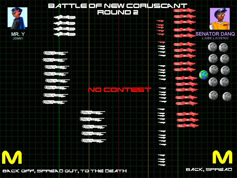 Incredible damage. Kassi and Jamski lose 25% percent of the fleet in the battle, and Geo loses 20% by having no bases and hitting a shield.