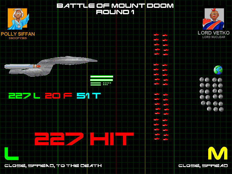 Prepared for the possibility of facing Vetko's entire fleet, Polly had prepared a maneuvered Lazorgeddon. This allowed Vetko to squeeze in some minor damage, but it was far too little to do more than just dent the enemy.