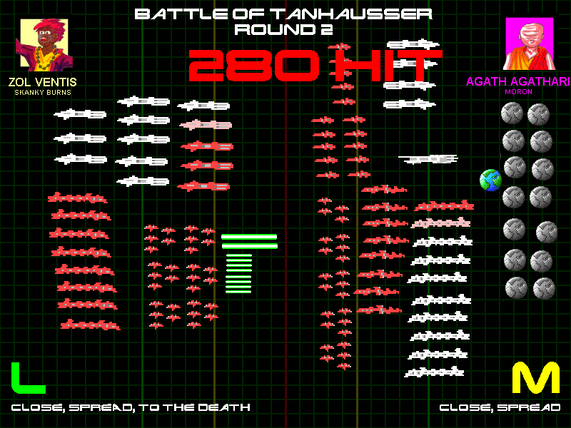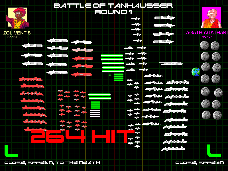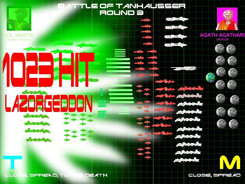 Zol wasn't the only one driven by desperation to mount a last-ditch attack. Colony I, also in a similar but worse situation, attempted the same. His entire fleet, now weighing in at just 90 lazorpower, charged Kit Chuss's growing empire.