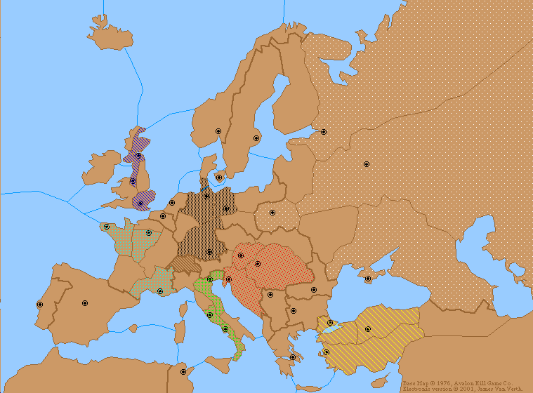 For those of you unfamiliar with the game, rules are here and other information can be found at www.diplomacy-archive.com, among other sites. I also strongly recommend downloading Realpolitik and playing around with it to get a good feel for the mechanics.