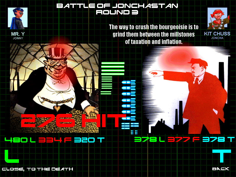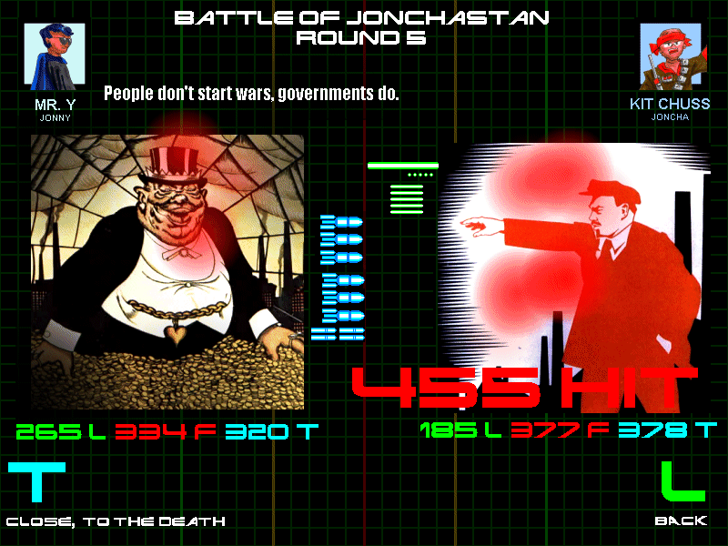 Jonny has landed 582 hits."You're the biggest user of hindsight that I've ever known. Your favorite team, in any sport, is the one that just won. If you were a woman, you'd likely be a slut." - Slowwhand, to Imran