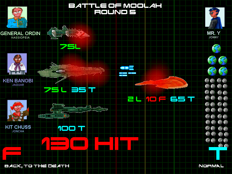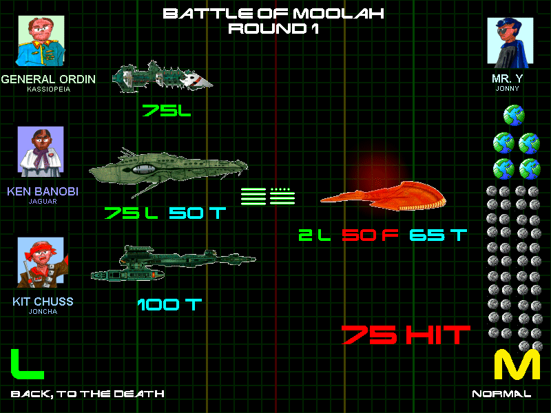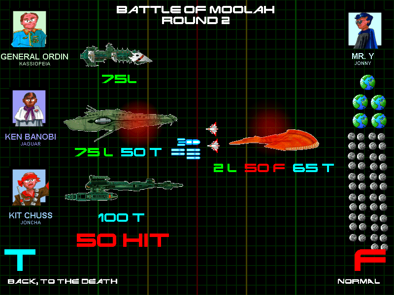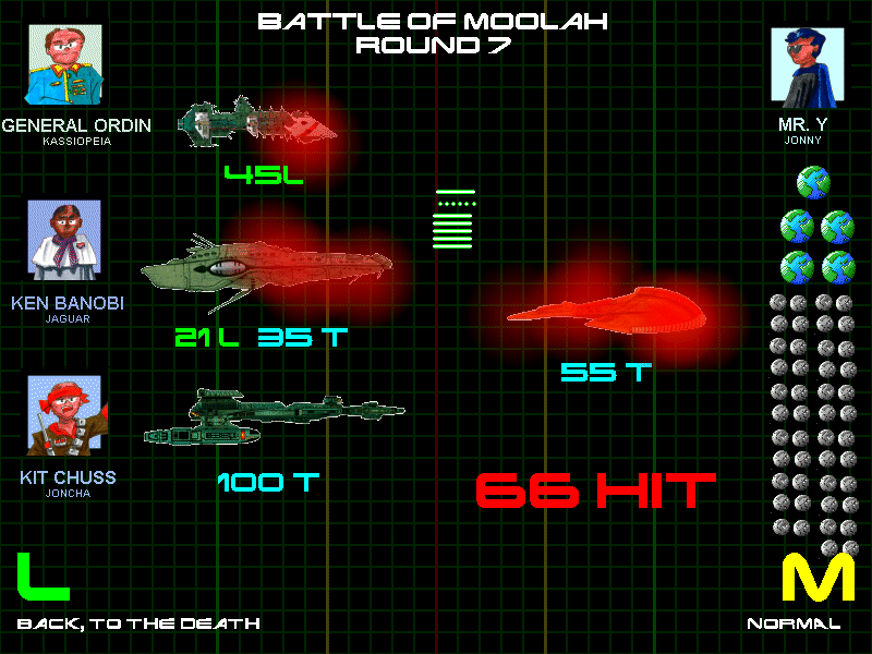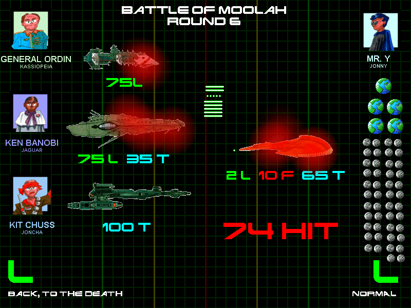 Despite all his production, Mr. Y's draftees were still severely outnumbered by the allied forces, whose balanced torpedo and laser fleet's impact was lessened only because, interestingly enough, the invaders had decided to back off.