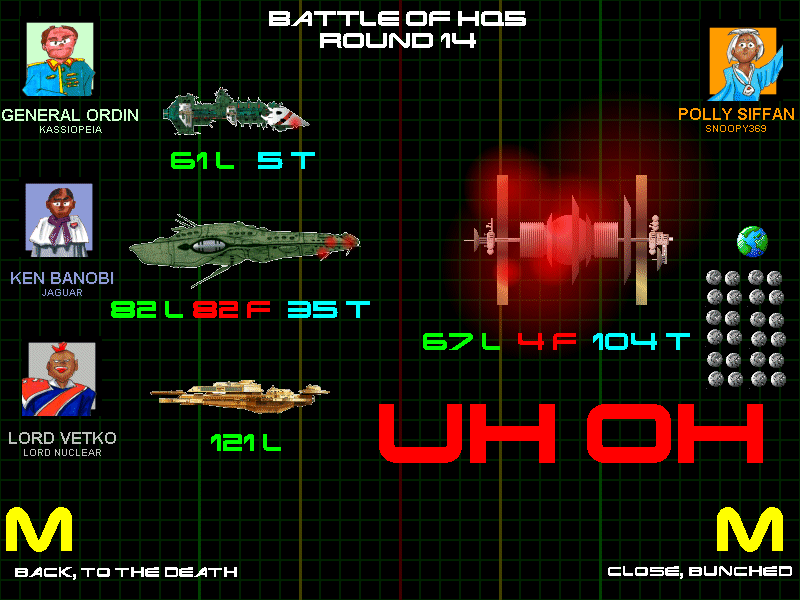 Ran some hypothetical results, with your similar OoBs, different fleet compositions or formations would have merely affected how long it took to die, in one case, had you backed off, we'd have gone to Round 45.Visit First Cultural Industries