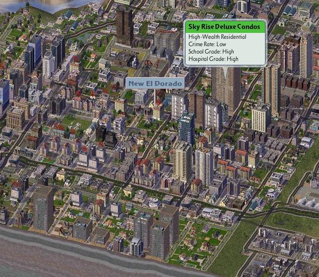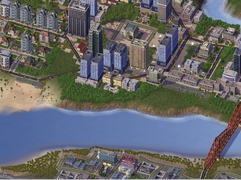 The old residential and commercial areas were seperated by plazas, open grasslands and forests. In the new residential area a beach was cleaned of toxic runoff and designated safe, this gave a big boost in desirability and saw lots of luxury apartments pop up overlooking the coast.
