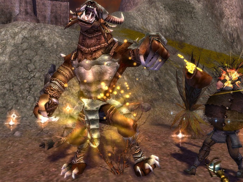 This is a Charr (Axe type I think) gasping its last breath after receiving a fatal blow from Stefan while a bag of gold 'pops' out.