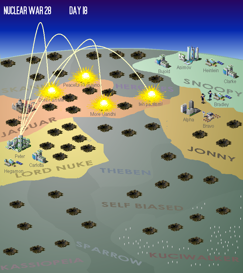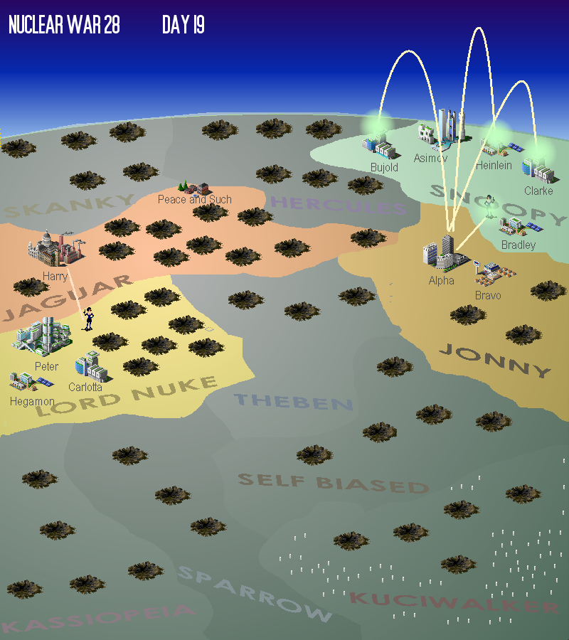 Today the previous two nuke volley was replied by a four-nuke whammy from Lord Nuclear.