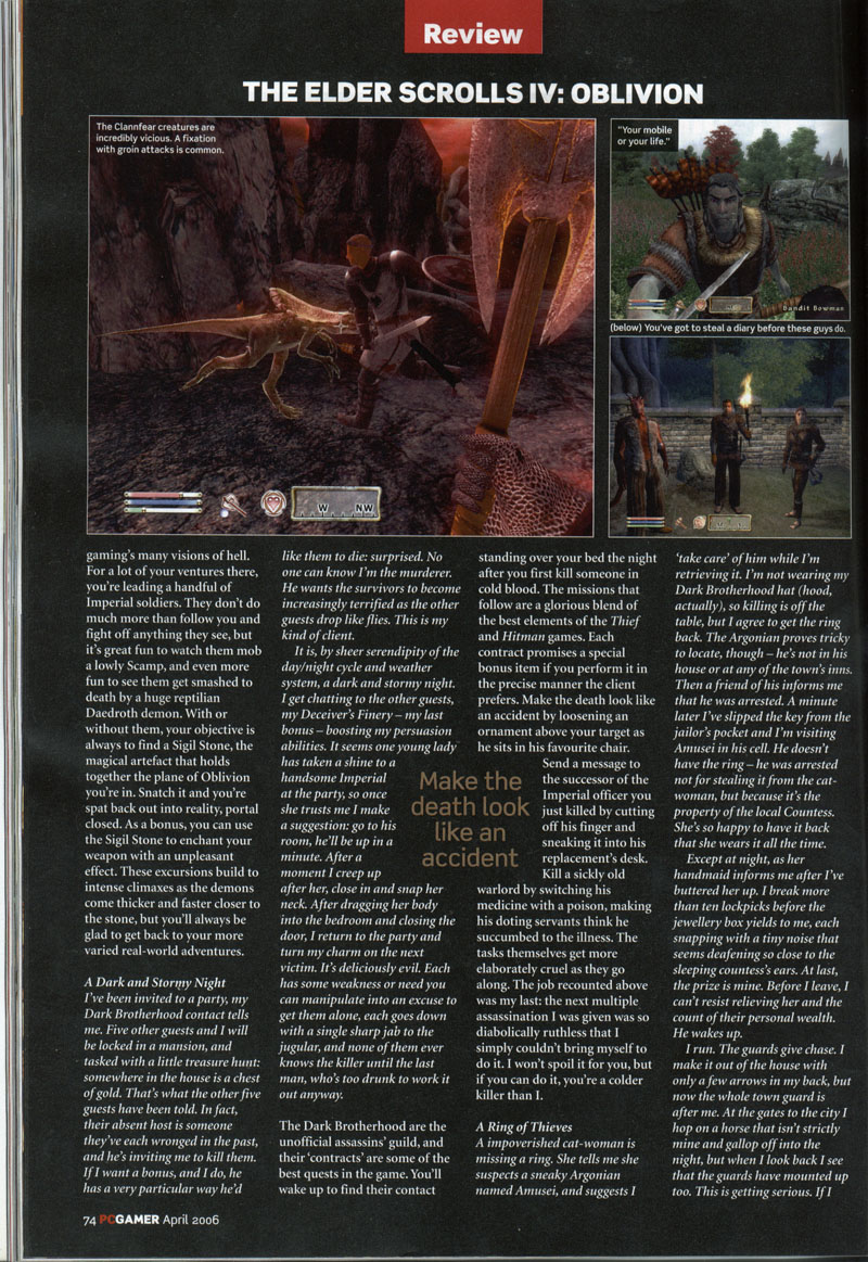 The quests sound fantastic of course Expacially the dark brotherhood. In fact, the entire stealth aspect of the game really looks extraordinary.