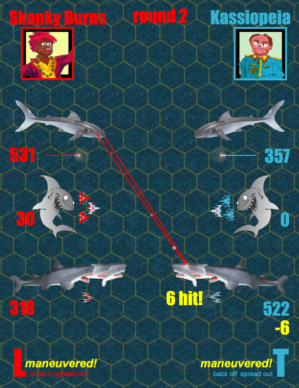 Skanky Burns's 149 Laser Frigates, 14 Laser Cruisers, 5 Fighter Cruisers, 68 Torpedo Frigates and 19 Torpedo Cruisers face Kassiopeia's 23 Laser Frigates, 32 Laser Battleships, 117 Torpedo Frigates and 19 Torpedo Battleships.~ If Tehben spits eggs at you, jump on them and throw them back. ~ Eventis ~ Eventis Dungeons & Dragons 6th Age Campaign: Chapter 1, Chapter 2, Chapter 3, Chapter 4: (Unspeakable) Horror on the Hill ~