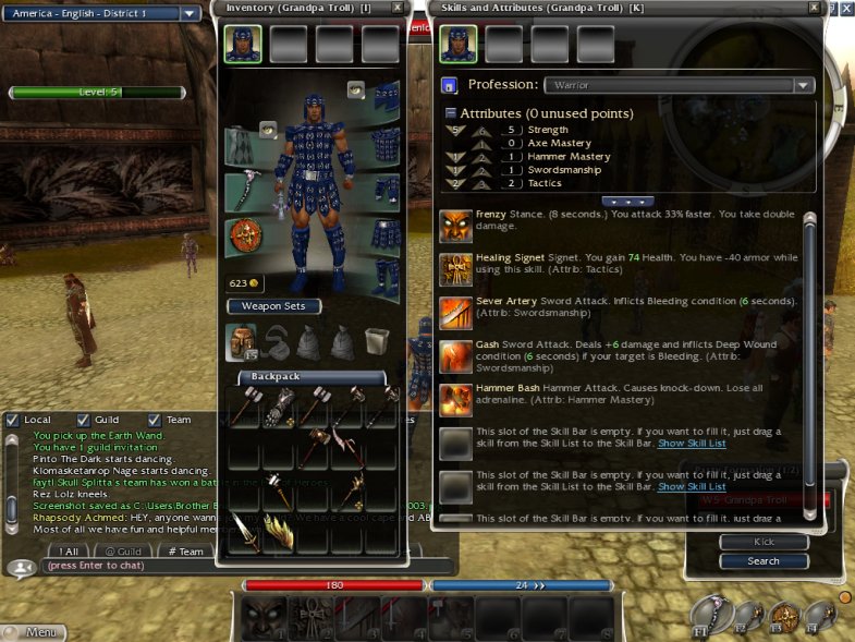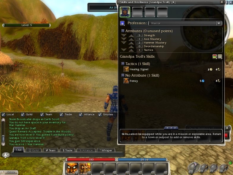 As you progress in Guild wars, switching around skills, and then doing a balancing act with attribute points, becomes almost its own strategy game within the game, as you try and figure out how to counter different kinds of attacks against you, and make your attacks on the bad guys more effective.