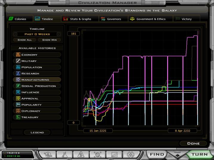 - the manufacturing graph falls to zero for all civs every time a game has been loaded - not sure whether there was a real effect as well (that there's no manufacturing in the turn after you've loaded a game)