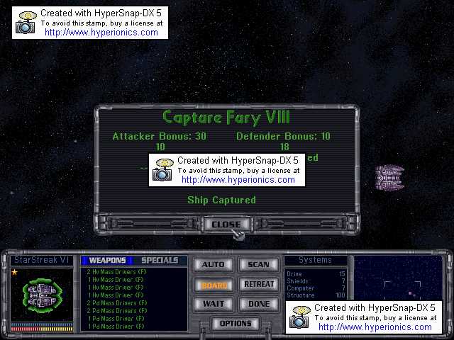 Meanwhile the brave warriors on StarStreakIV disabled and captured a Rock Warship, which